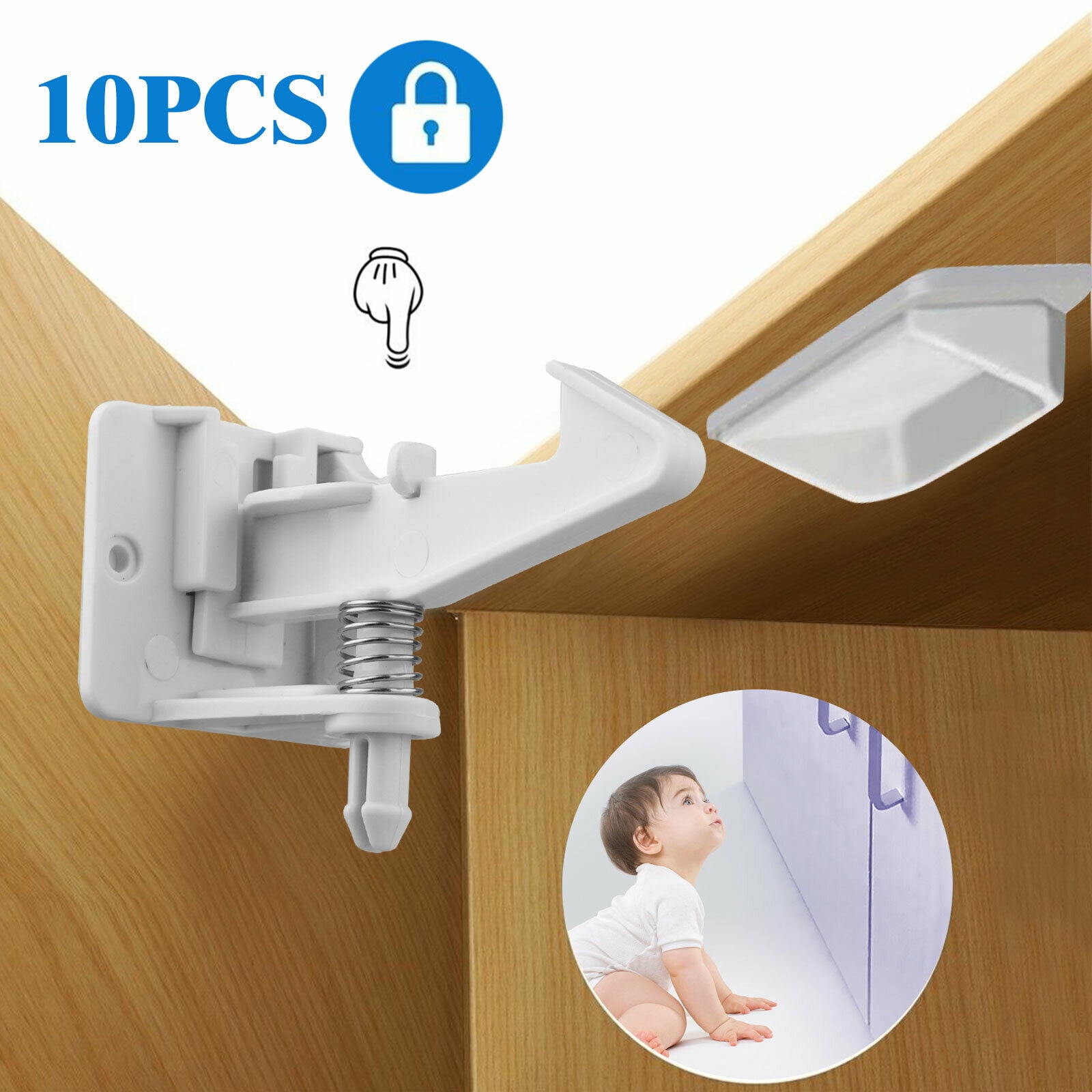 The sleek design makes the lock less obtrusive. Baby proofing cabinets without screws has never been easier with this child proof cabinet latch set. And since your child won't be able to reach the locks, there'll be no way for them to open them. Cabinet latches you can trust: Child safety cabinet locks, no drill need, easy to install., no keys needed, easy to use.